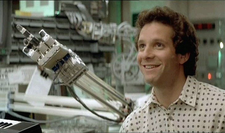 Overall, I’d say that, brownface aside, the movie holds up pretty well. The masterful animatronics work plays a big part in that, and there’s actually a fair bit that’s ahead of its time in a way (a food truck in Portland, OR; an Indian programmer at a time when Japan, not India, was seen as the big tech threat to American jobs). It certainly holds up better than The Last Starfighter. If you can get past the really unfortunate decisions regarding Fisher Stevens’s character, I’d say it’s worth a look if you are in the mood for a sci-fi comedy.