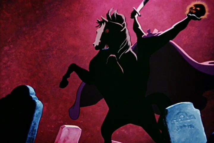 Villains: B- (The Horseman himself is actually legitimately scary. Brom Bones, however, is just a low-rent Gaston without the later character’s charisma or true viciousness)