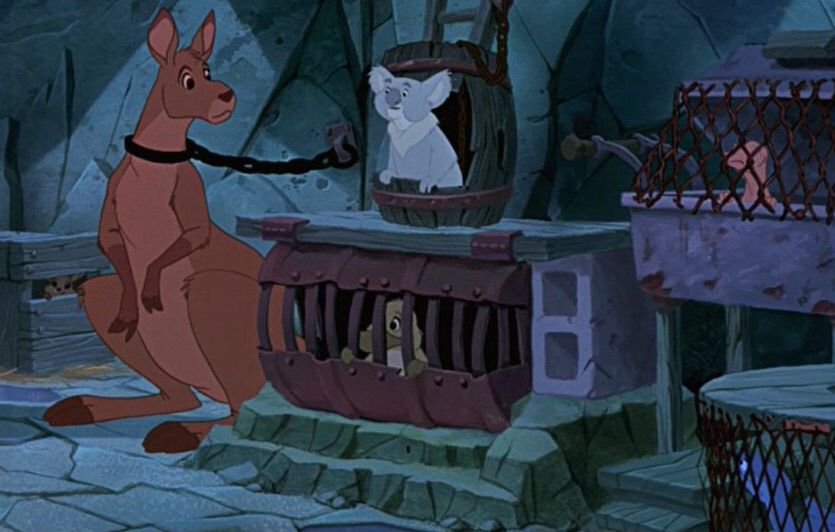 In fact, Bernard and Bianca almost seem to be in an entirely different movie for a good portion of the running time. They only really meet up with Cody and McLeach with about twenty minutes left in the movie. Before that, their adventures in the Outback with Jake are completely separate from Cody and his escape attempts, and are actually the less interesting half of the movie. While I enjoy the concept of the Rescue Aid Society and think that Jake was a good addition to the cast, I think the movie might have been stronger if Cody was actually the main character. As it is, all of the animals that he befriends in the cages completely disappear from the movie once McLeach lets him go, never to be seen again. It’s a waste of a good supporting cast, on both sides of the plot.