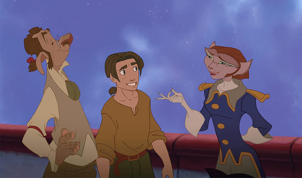This look, of course, was enhanced through the heaviest use of CG yet in a Disney film (not counting Dinosaur, which was only added to the canon retroactively). Often the main characters were the only things in the frame that were hand-drawn at all. And sure, some of the time the early-2000s era CG stood out quite noticeably. But a lot of times, especially when Deep Canvas was being used for backgrounds, the effect was pretty seamless. Looking at Treasure Planet, it’s actually pretty understandable why Disney eventually went to all-computer animation. They were already heading there anyway, even without the continued failures of their traditionally animated films. I just think that it would have been a much more organic progression than it was if they’d had more financial success early on.